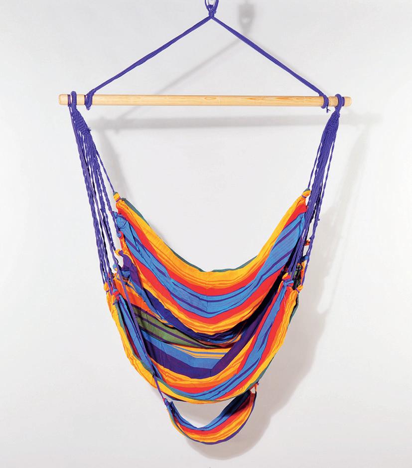 Urlaubsfeeling für zuhause kommt dank der Baumwoll-Sitzhängema e Regenbogen (€ 95,95) auf, die der Weltladen Josefstadt spendiert hat. In dem fair gehandelten Stück mit Fußteil lässt es sich bequem chillen. Gefertigt wurde der Ausdem-Alltag-Schleudersitz in einem Familienbetrieb in El Salvador; er trägt bis zu 120 Kilo.
