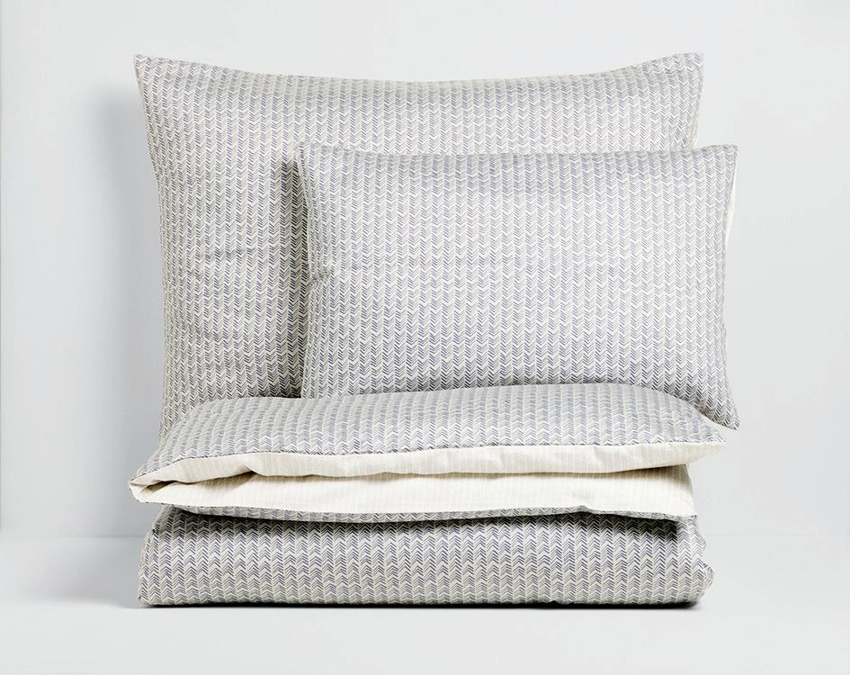 Es wird kühl abends. Und nachmi ags. Und überhaupt ist hyggelige Be wäsche nie verkehrt. Vor allem nicht, wenn sie von der Grünen Erde stammt. Die Wendebe wäsche SELDA aus hundertprozentiger, GOTS-zertifi zierter Baumwolle in Satinqualität in Rauchblau ist obendrein ein Au übscher für jedes Schlafzimmer. Der beidseitige Fischgratmuster-Druck ist von Hand entworfen, gefertigt wurde das Set in Deutschland, es kostet im Laden € 433,60