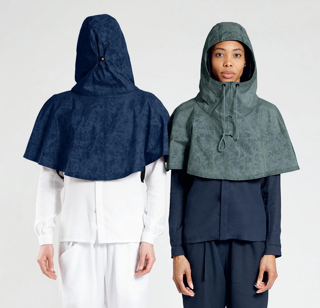 Sie ist der Knirps unter den Regenjacken: Die ultraleichte und kompakte thermoaktive Regenkapuze von DARYN CHOOK. Passt in jede Tasche, schützt Kopf und Schultern vor leichtem Regen und Wind und wechselt dabei auch noch stylish die Farbe. Der ideale We erschutz für die Großstadt. Preis € 160,–