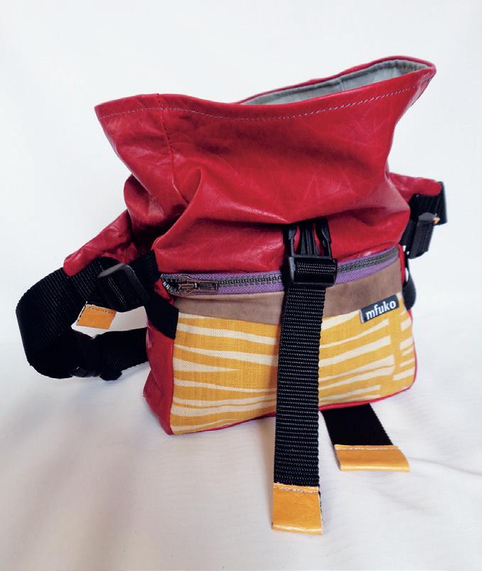 Mfuko bedeutet Tasche in Swahili und so simpel wie der Name des Wiener Labels von Birgit Mühlegger, so einfach ist auch sein Programm: Rucksäcke und Taschen aus Restmaterialien. Auf unserem Gabentisch liegt dieses Unikat: eine in Wien aus Lederresten genähte Bauch-/ Umhänge tasche. Ladenpreis: € 95,–