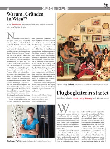 enn man sich selbstständig machen möchte, ist es am besten, sich mit jemanden zusammenzusetzen, der ein ähnliches Unternehmen umgesetzt hat“, meint Kirsten Pevny. Ihre Firma Pure L iving Bakery gründete die Hotelfachschulabbrecherin aus Hietzing 2007 in Wien. Sie verließ Österreich mit achtzehn, arbeitete als Flugbegleiterin bei Lufthansa, bereiste die halbe Welt – und entdeckte dabei viele tolle Kaffeehäuser. „Besonders die Cafés in Kalifornien und Kapstadt