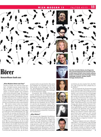 ponisten haben wir geschrieben: Nur, wenn das Publikum als tanzendes auf der Tanzfläche bleibt, ist das Stück gut.“ Hier wird das „Betriebsgeheimnis“ gelüftet, wie es als schriftliche Aufforderung in den Aufträgen an die Komponisten erging: „Tanzmusik. Also wirklich Musik zum Tanzen. Komponiert von zeitgenössischen Komponistinnen und Komponisten für das RSO Wien und Wien Modern. Mit dem Publikum auf dem Tanzparkett statt in Sesselreihen. Das ist die Herausforderung dieses Abends für das Publikum, für das Orchester und für die Komponist/-innen. Tanzmusik für Fortgeschrittene, aufbereitet im tanzbaren Format von plus/minus drei Minuten, am Abend dramaturgisch fein durchmischt mit manch orchestraler Preziose aus der Tanzhistorie.“