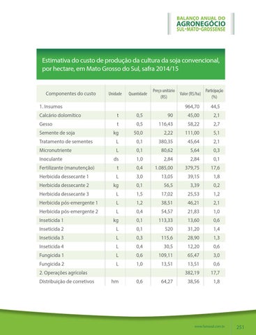 Estimativa do custo de produção da cultura da soja convencional, por hectare, em Mato Grosso do Sul, safra 2014/15