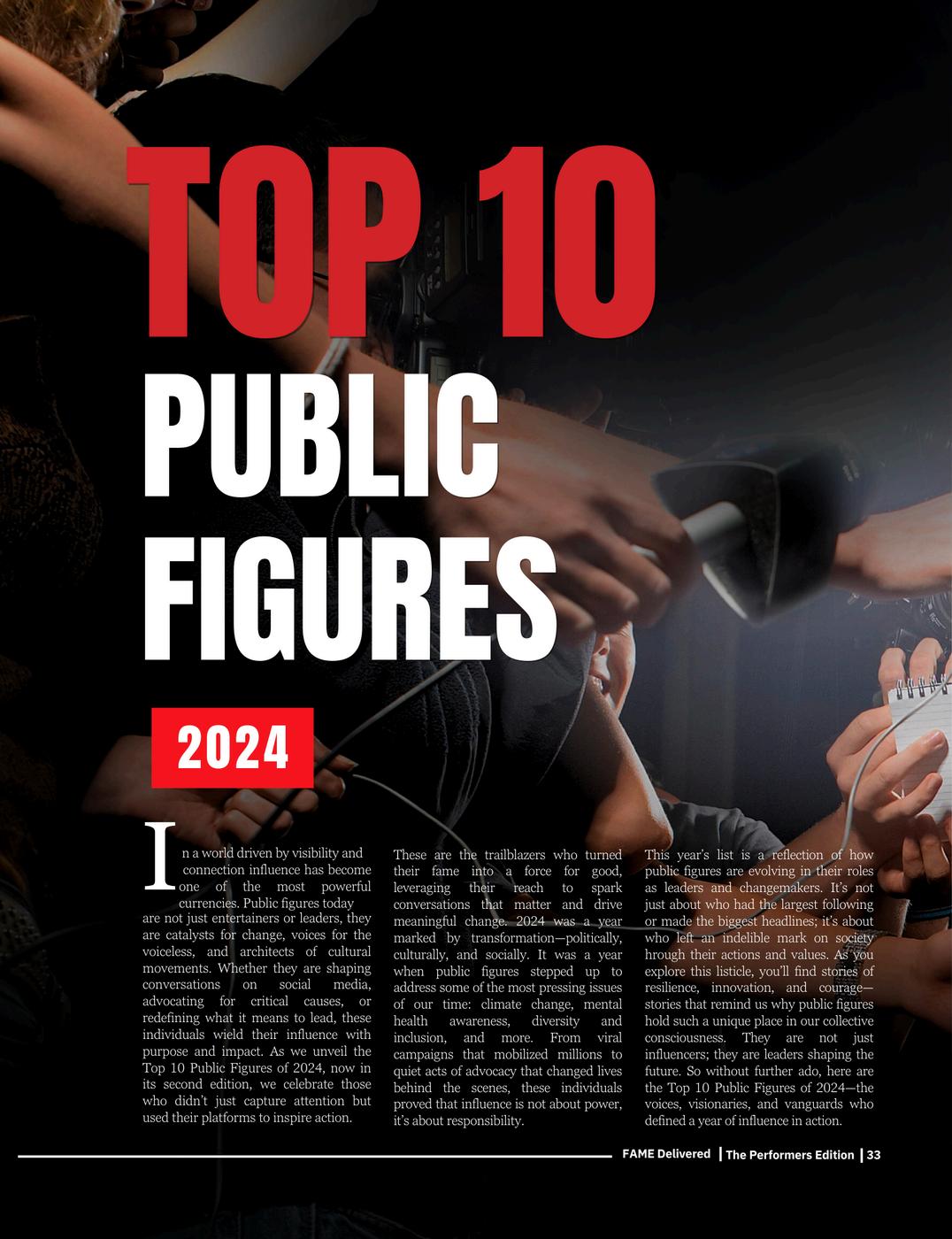 FAME Delivered, we ’ ve always celebrated those who push boundaries, but this year ’ s Performers Edition feels particularly special It is a tribute to the individuals and moments that didn’t just capture our attention but reshaped industries and influenced lives.
