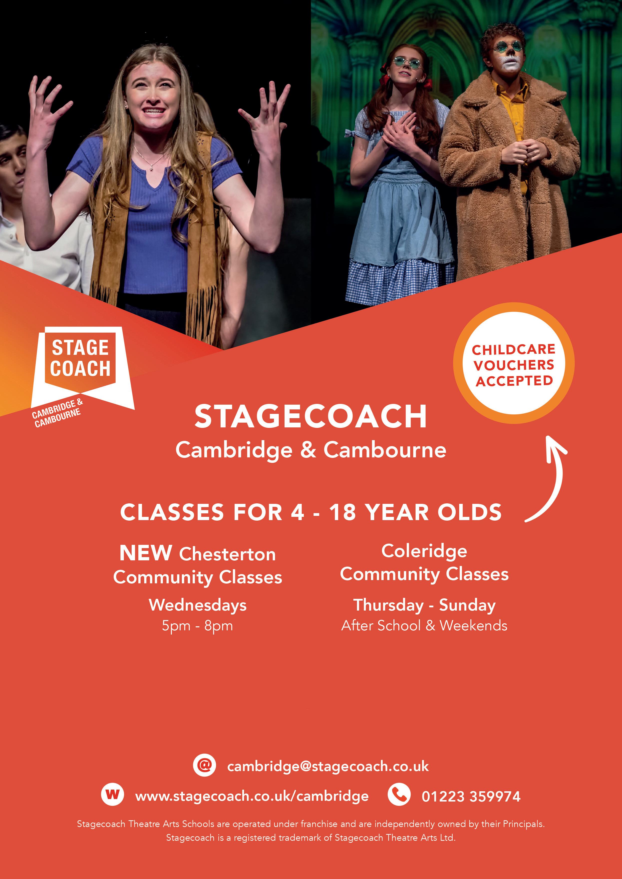 Stagecoach aims to nurture and develop young potential through singing, acting and dance classes in Cambridge & Cambourne, stretching young imaginations and helping them to develop confidence, physical awareness, communication and articulation.