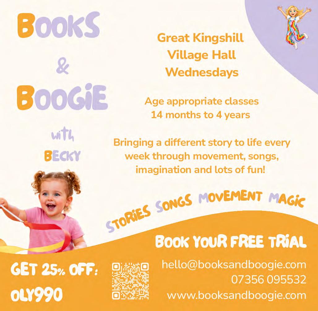 Classes are held each Wednesday at Great Kingshill Village Hall. Special Reader Offer of 25% off until August 2026 with promo code: OLY990. Redeem online: �� booksandboogie.com