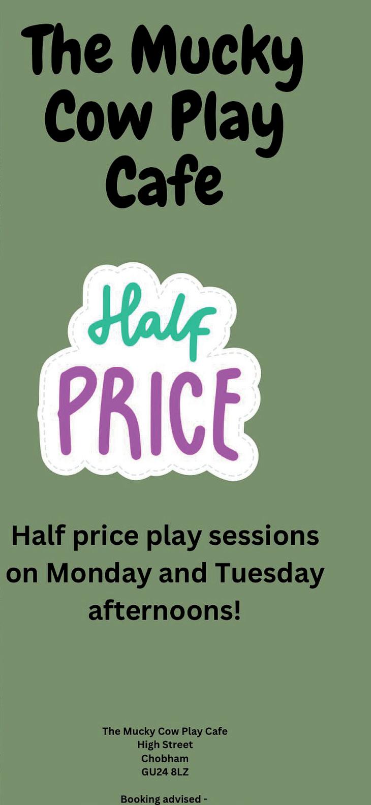 The Mucky Cow Play Café - café in Chobham with a play area, classes and special events, now offering half price sessions on Monday and Tuesday afternoons