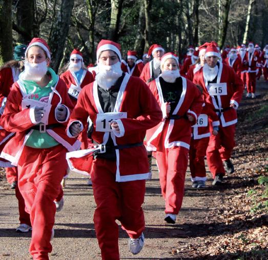 Farnborough Every adult who registers receives a Santa Suit and each child gets a pair of reindeer antlers. The run consists of 2 laps of Queen’s Avenue Playing fields, approx 5k in length. You can run or walk - it is for fun, not a race - all welcome! Adult £15, child (14 and under) £7. You must register in advance at www.pth.org.uk/event/ santa-fun-run/ Festive Fun Run Woking Park Run, jog, skip or walk as many 1k laps of Woking Park as you like. Register at https://wsbhospices.co.uk. Plus there’s a Christmas Market from 10am-3pm.