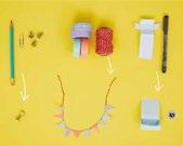 Make some bunting using thread and decorative tape. You can even make a window plant box by folding up some paper and gluing it underneath one of the awnings.