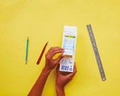 Grab your (empty) milk carton. Take your ruler and get your child assistant to measure and trace two flaps for awnings and a hole for the birds. Then cut the holes.