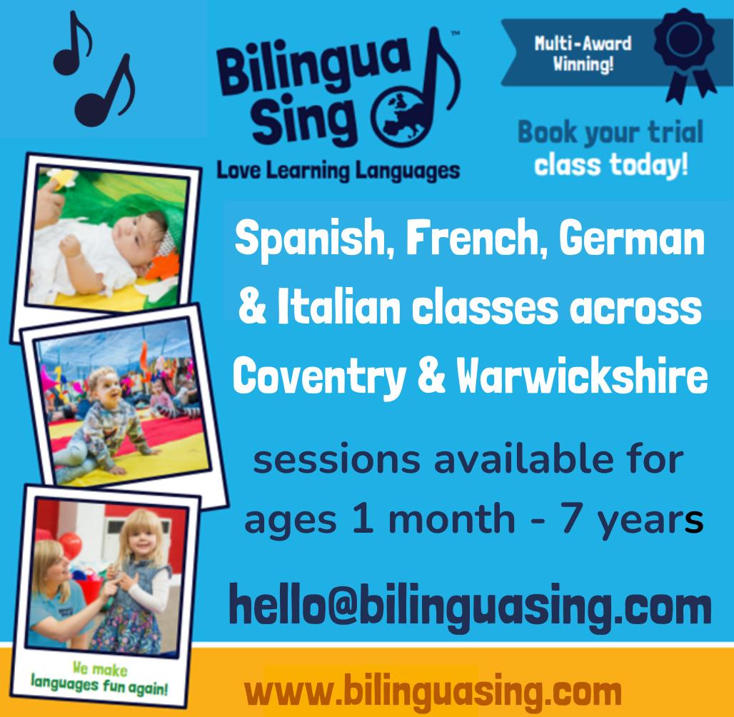 BilinguaSingsessionsareavailableforchildrenfromtheageof just4weeksold!Youcanchoosefromfourdifferentlanguages locally–French,Spanish,GermanandItalian.