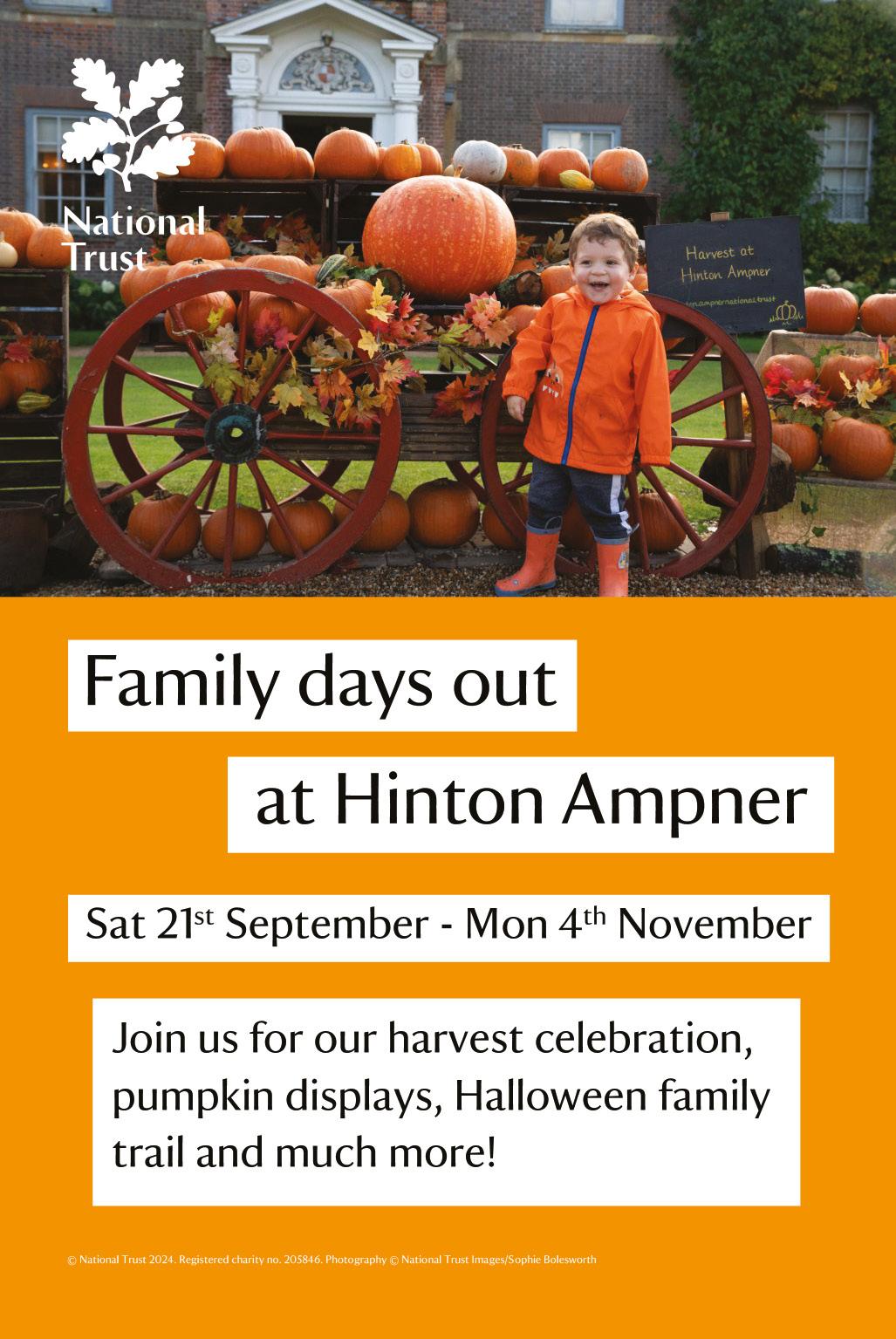 Jump in to autumn with a splash of colour and marvel at our beautiful pumpkin displays around the grounds. Discover over 200 pumpkins! 10am-5pm. nationaltrust.org.uk/hinton-ampner