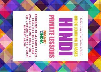 Hindi classes Speak from the first lesson. No previous knowledge needed. Small group zoom classes. Missed class support. Classes: 5-7, 8-14, 16-adult. New toddler singalong. Private lessons. Free trial class. Quick learning holiday clubs too. "Geeta uses English teaching methods and merges them with songs, poems, drawing, colouring, and various other innovative methods so children are engaged in learning Hindi and at the same time learn about their culture." magicofindia.org