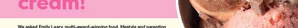 We asked Emily Leary, multi-awardwinning food, lifestyle and parenting writer, presenter, photographer and author of A Mummy Too to share her delicious, creamy dairy-free ice cream recipe with us. This perfect summer treat will cool you down on even the warmest of days and inspire the whole family to get in the kitchen just for a lick of the spoon!