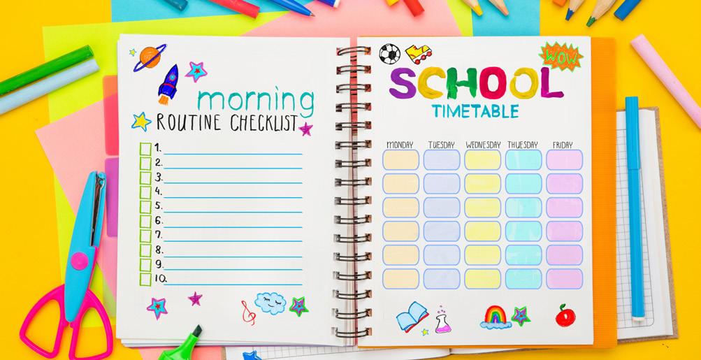 A week before school starts in September, tell your child it’s time to get their brain ready to learn again, which means getting used to school bedtimes! It also usually means getting up earlier than in the holiday. Start to limit screen time that can distract their brain and make concentration at school more difficult. Put together a homework kit and decide when and where homework will be done (allowing for after school clubs).