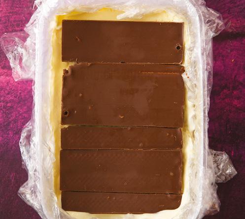 Remove from the container, unwrap and place on a board. Drizzle with the magic chocolate sauce and allow to set - this should only take a couple of minutes.