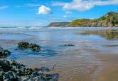 Golden sands, rock pools, café, beach shop, toilets & showers.