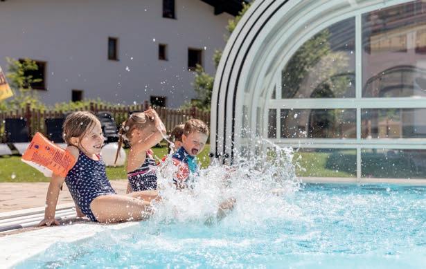 Neuer Happy-Club mit Atelier, Kinderküche u. v. m. Geführte Familienwanderungen in den Dolomiten Wellness & Spa auf 2.500 qm mit Indoor- und Outdoor-Pools Tennisplatz & Fußball-Kleinfeld