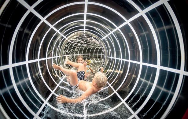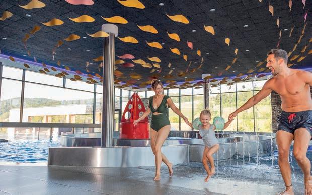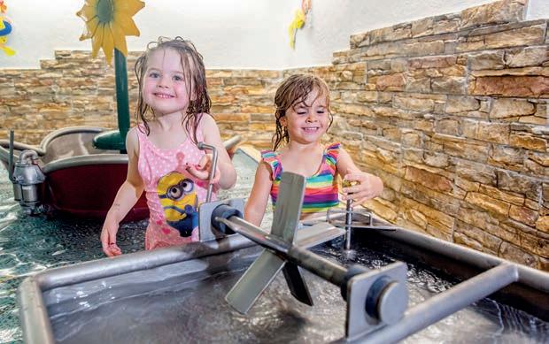 Indoor-Familienbad mit Highlights für jede Altersgruppe: Kindererlebnisbecken, Schlangenrutsche, Indoor-Wasserspielplatz, Ruheraum, Damp ad, Salzkammer und Aromasauna.