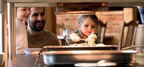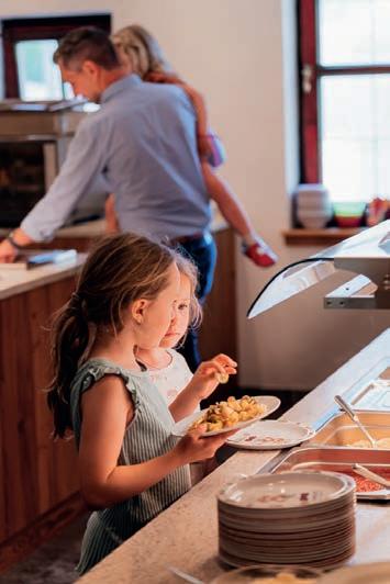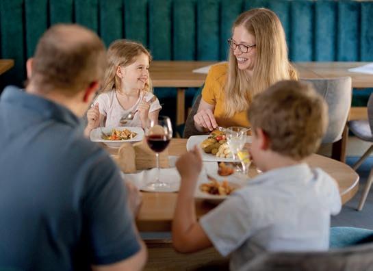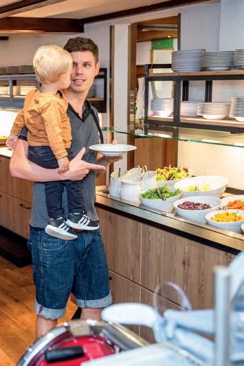 Genießt kulinarische Vielfalt und entspannte Momente: Erwachsene starten mit einem reichhaltigen Frühstücksbu et in den Tag und lassen sich abends mit einem GourmetWahlmenü verwöhnen.