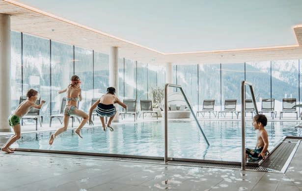 79 Stunden liebevolle Kinderbetreuung pro Woche Gourmet-Vollpension mit All-Inclusive alkoholfrei für Groß und Klein Beheizter Innen- und Außenpool, Sauna und Damp ad, Spa-Behandlungen Ski-In & Ski-Out direkt vor dem Hotel E-Bikes mit Anhänger und Mountain-Roller zum Ausleihen Themenwege, Minigolf-Parcours durch Malbun, Happy-Schwimmschule u. v. m.