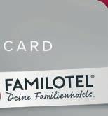 Die Familotel AG übernimmt keine Haftung für eingereichte Manuskripte und Fotos. Alle verö entlichten Fotos und Beiträge sind urheberrechtlich geschützt. Ohne schriftliche Genehmigung der Familotel AG ist eine Verwertung außerhalb der Grenzen des Urhebergesetzes unzulässig. Angebotsänderungen sind vorbehalten. Bitte wenden Sie sich für weitere Informationen zum aktuellen Leistungsangebot an das von Ihnen gebuchte Familotel.