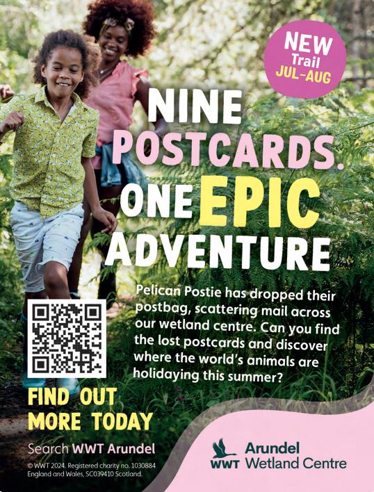 Woods Mill Nature Reserve Henfield BN5 9SD. Sussex Wildlife Trust HQ, nature reserve, woodland, meadows & reed-fringed lake, FREE. WWT Arundel Wetland Centre BN18 9PB, nature reserve, guided boat safari, adventure playground, children’s activities, visitor centre & café, family trails & events during the holidays and all year round. (see advert p.5)