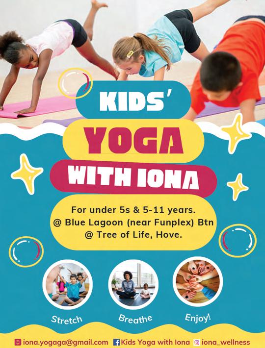 Kids’ Yoga with Iona, Blue Lagoon, Brighton BN24JE, Thu 4pm & Tree of Life, Hove BN3 5QJ, Fri 9.45am, £8 per class, U5s, iona.yogaga@ gmail.com (see advert p.10)