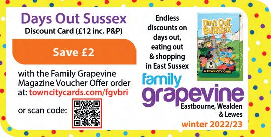 Advertise with us and let your local community know about your services & products The next issue is the WINTER 2022 issue, which will be published early November, so look out for it on our website & social media! email: bettina@thefamilygrapevine.co.uk Eastbourne, Wealden & Lewes ewlfamilygrapevine www.thefamilygrapevine.co.uk/eastbourne-wealden-lewes