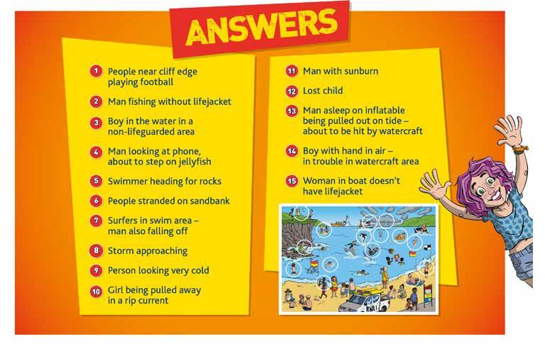 7342_N&S_summer_grapevine_125x195_v2.indd 1 24/05/2023 12:17 4 Gently move your hands and feet to help you float. 2 Lean back to keep your mouth and nose out of the water. 3 Push your belly up and stretch out your arms and legs into a star shape. 1 Keep calm. Don’t swim hard. Hold onto anything that floats. 5 Do this until you feel more relaxed. When you’re calm, raise your arm and shout for help. Swim to safety if you can. 6 The RNLI is the charity that saves lives at sea Royal National Lifeboat Institution, a charity registered in England and Wales (209603), Scotland (SC037736), the Republic of Ireland (20003326), the Bailiwick of Jersey (14), the Isle of Man, the Bailiwick of Guernsey and Alderney