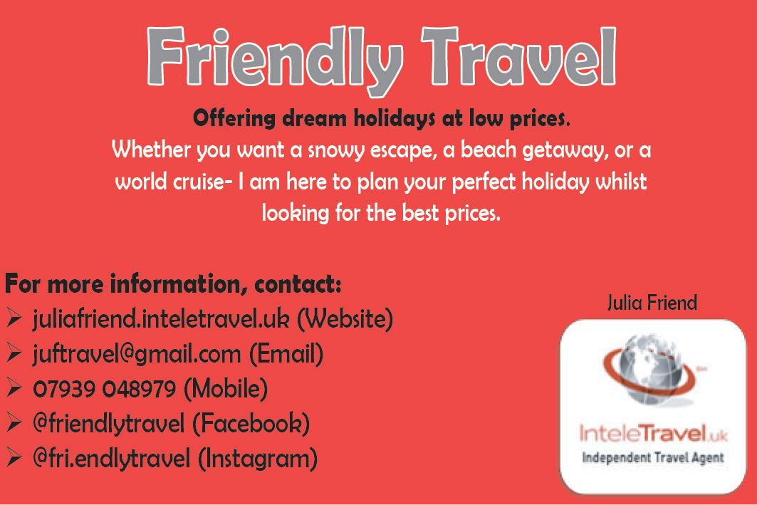 Friendly Travel, travel agent to help to find a perfect holiday at a great price, www.juliafriend.inteletravel.uk, 07939 048979