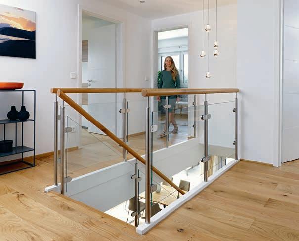 Durch das Glasgeländer am Balkon fällt der Blick ungehindert nach draußen.