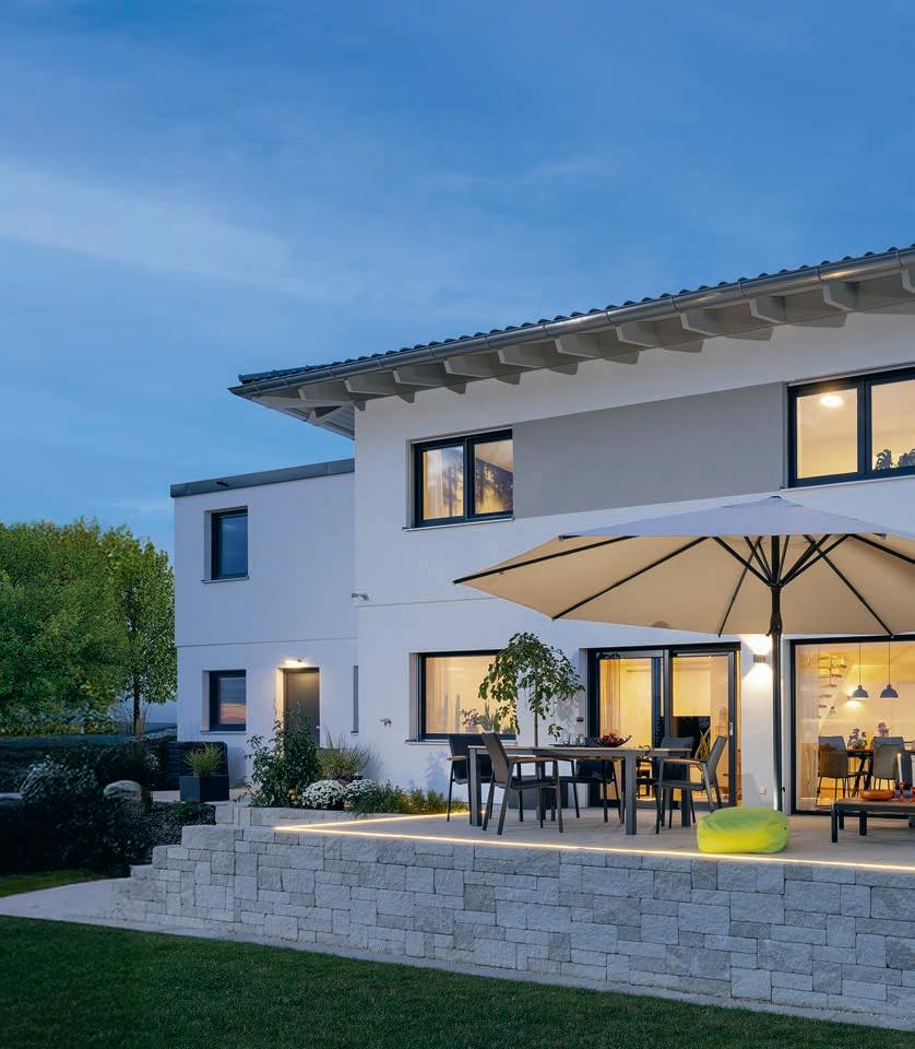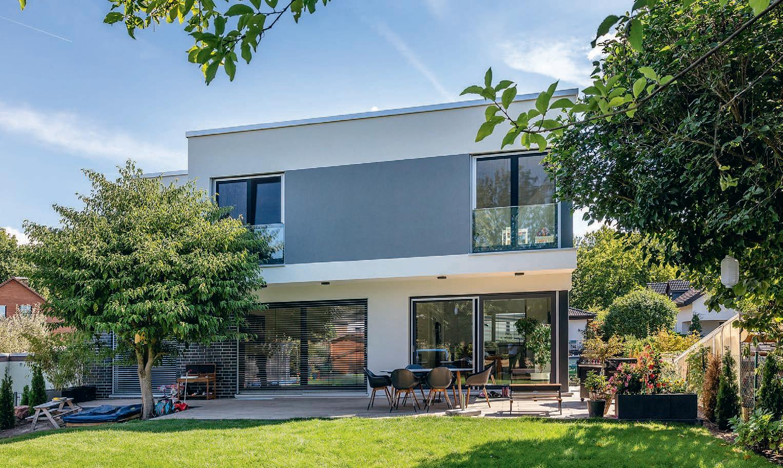 • Raumhohe Glasflächen, Terrassenschiebetüren und Eckfenster