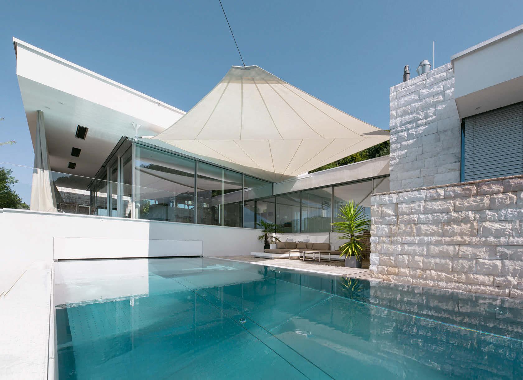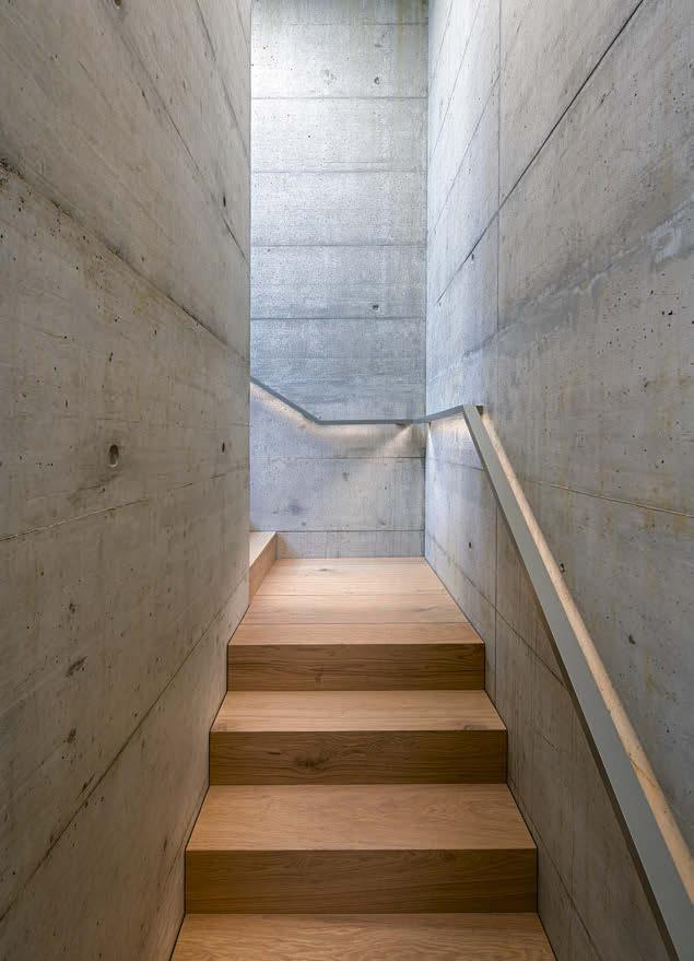 einem Schmunzeln. Sie erinnert sich an den Moment, als sie den ungewöhnlichen Entwurf zum ersten Mal sieht. Erd- und Untergeschoss verjüngen sich zur Talseite. Darüber thront das Obergeschoss, das durch die Dachterrasse und die vielen Fenster wie die Kommandobrücke eines Ozeanriesens wirkt.