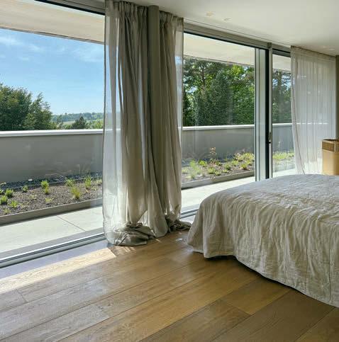 Wenn Tani heute ihr fertiges Haus betrachtet, denkt sie sich immer wieder: „Krass, ist mein Haus schön.“ Ihr Lieblingsraum? Tagsüber ist es das Wohnzimmer, morgens das Schlafzimmer – von Tani nur „Aquarium“ genannt. Warum? Es gibt nur eine Trockenbauwand hinter dem Bett – rundherum öffnet sich der Raum mit bodentiefen Fenstern zur Natur. „Ich wollte die Bäume und den Himmel bei mir im Haus haben.“ Wenn die Äste im Wind tanzen, wirkt es, als würde das Haus selbst in Bewegung geraten – wie ein Kreuzfahrtschiff, das majestätisch durch ein wogendes Blättermeer fährt. (lvl)