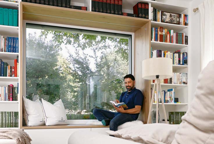 Gerade richtig falsch „Eigentlich habe ich beim Bau alles falsch gemacht, was mir der Professor im Studium hätte vorhalten können“, lacht der Bauherr. Flutprobleme gibt es trotzdem keine. Die leichte Hanglage und die L-förmige Mauer vor dem Haus gleichen den Tiefgang aus. Noch ein scheinbarer Architektur-Fauxpas: Das Fenster im Wohnzimmer schaut nach Norden. In