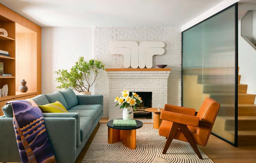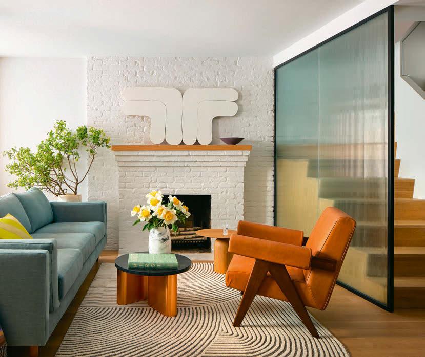 Ess- und Wohnzimmer unterteilt ein schwebendes Regal. So büßt der Raum nichts von seiner Leichtigkeit ein.
