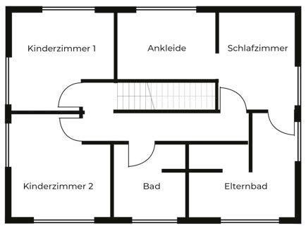 Im originalen Grundriss war das Elternbad nicht geplant. Um Platz für zwei Bäder zu schaffen, gibt es ein Kinderzimmer weniger.
