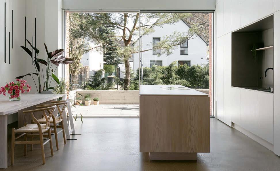 mussten an einer Seite an das Nachbargebäude anbauen.“ Dass ihr Haus – genauer gesagt der Bestandsanbau, wie man im Baujargon sagt – trotzdem wie ein separates Einfamilienhaus wirkt, ist den Architekten zu verdanken. Sie hoben den zweigeschossigen Anbau optisch klar vom Bestand ab. Das Erdgeschoss ist grau verputzt, das obere Geschoss bis zur Dachkante mit einer Holzverschalung versehen. Im Inneren könnte höchstens auffallen, dass es an einer Hausseite keine Fenster gibt. Aber da muss man schon sehr genau hinsehen, um das zu bemerken.