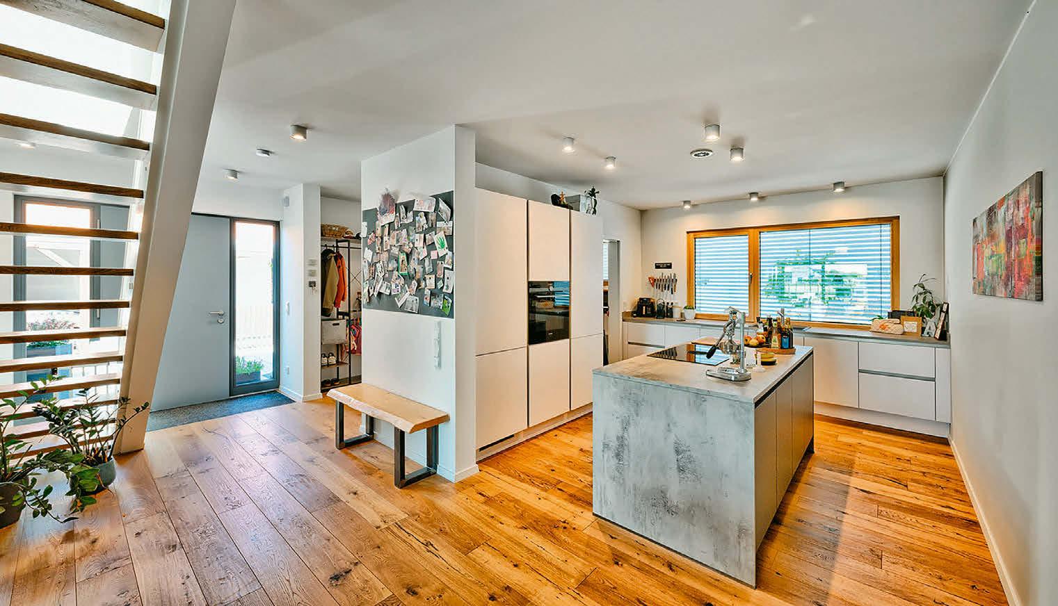 eine Hauswand „blockiert“, wollten sie vor den übrigen drei Seiten keine Außeneinheit aufstellen. Sie fanden eine Wärmepumpe, die keine braucht. Zusätzlich kann die Anlage sogar kühlen und übernimmt die Be- und Entlüftung. Der dafür nötige Strom wird über die Photovoltaik-Anlage mit Speicher abgedeckt. Dank der effizienten Technik und der intelligenten Verschattung kommt das Haus der Beyers so auf die Effizienzklasse A , was einem KfW-Effizienzhaus 40 entspricht. Das Haus zeigt: Selbst wenn die Bauvorschriften die Pläne einschränken, lässt sich ein Zuhause schaffen, das allen Wünschen der Familie gerecht wird. (mla)