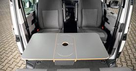 auf 4,0 Tonnen, die mit 432,- Euro relativ moderat zu Buche schlägt. Und wie mache ich aus einer Face-to-Face-Sitzgruppe mit zwei Längsbänken zwei weitere Sitzplätze? Ahorn hat das Problem mit einem einfachen und schnellen Umbau der Längsbänke zu zwei Einzelsitzen mit Kopfstütze und Sicherheitsgurt prima gelöst und kann auf diese Weise vier eingetragene Sitzplätze im Fahrbetrieb anbieten.