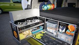 unter dem Hubbett mit nutztauch für eine ViererCrew absolut ausreichend. Zentral in der Küche gibt´s - wenn auch sehr sparsam - Strom: Lediglich eine 230 Volt-Steckdose und ein USB-Anschluss sind hier im Angebot.