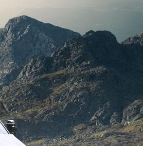 Die Drehgondel „Rotair“ bringt uns zur Bergstation auf 3.020 Meter über dem Meeresspiegel. Zu Fuß oder mit einem Sessellift kommt man noch ein wenig höher und kann die Bergstation von oben sehen (rechts unten).
