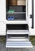 Heizung Truma Combi 4 mit CP-Plus-Panel, integrierter 10-l-Boiler, Warmluftgebläse mit 5 Ausströmern, 85-l-Frischwassertank mit Druckpumpe, 120-l-Abwassertank unterflur, 80 Ah AGM-Aufbaubatterie im Servicefach, LED-Lichtleisten für Hintergrundbeleuchtung, Bodenleuchten, LED-Beleuchtungselemente, Ambientebeleuchtung, Steckdosen 2 x 230 Volt, 1 x 12 Volt 6 x USB, Gasvorrat: Gasflaschenkasten 2 x 11 kg, Gasregler mit CrashSensor