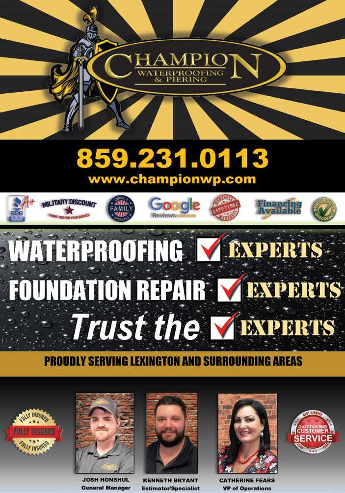 CALL 859-327-3212 M-F FOR A FREE QUOTE. 10% OFF FOR SENIORS & MILITARY EVERY DAY! Powder coating is more durable than paint, and, with low VOC’s, is also environmentally friendly. Once your part is powdered, we bake it in our oven for a very strong and durable finish. We can powder coat anything that is metal, from aluminum cups to patio furniture to auto parts. We can even powder your truck or motorcycle frame. WELDING/FABRICATION MEDIA BLASTING 15 % OFF Good through 1-6-2023. FSM CRITTER CONTROL ® You’re about to entertain some unexpected guests. OPOSSUMS GROUND HOGS SQUIRRELS MOLES BATS BIRDS RATS & MICE RACCOONS SKUNKS Lexington (859) 278-3747 or 1-800-CRITTER www.crittercontrol.com Protecting People, Property & Wildlife® Receive a $25 DISCOUNT On Initial Inspection Only. (859) 277-0716 WWW.TRULYNOLEN.COM *$20 OFF OFFER VALID WITH ANNUAL CONTRACT ONLY WITH FSM PRESTIGE GRANITE COUNTERTOPS 341 VIRGINIA LANE, NICHOLASVILLE, KY 40356 WWW.PRESTIGEGRANITECOUNTERTOPS.COM MON-FRI 9AM-5PM; SAT 9AM-1PM & 859-881-0811 WINTERSPECIALS! HUGE SALE SATURDAYS BY APPOINTMENTS ONLY Keane Rd. N. Main St. Richmond Ave. Wilmore Rd. • Quartzite, Granite, Quartz & Marble • Quick turnaround time • FREE Estimates $100 OFF UP TO INSTALLATION of 50 sq/ft or more NEW CUSTOMERS ONLY. FSM ON QUARTZ