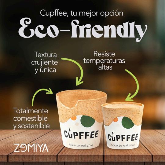 Vaso comestible Cúpffee. La opción sostenible y eco-friendly para tu negócio! Zemiya ofrece una alternativa perfecta para reducir la generación de vasos plásticos. Hechos con ingredientes naturales y biodegradables.Son la elección consciente que tu empresa necesita.