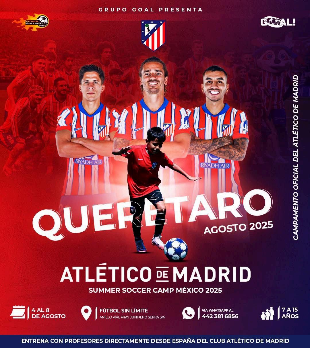 Inscripciones abiertas para el Summer Camp México 2025, desde Querétaro. Entrena con profesores del Club Atlético de Madrid en una semana con fútbol del más alto nivel.