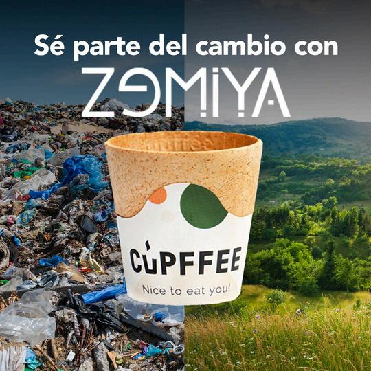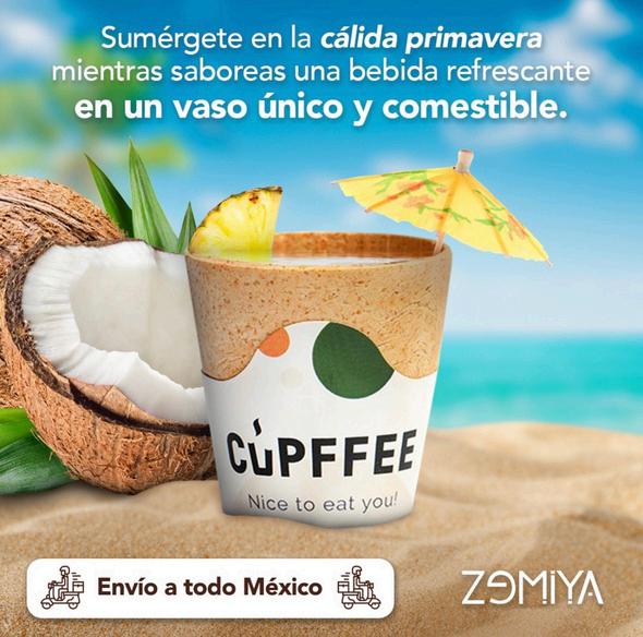 Vaso comestible Cúpffee. La opción sostenible y eco-friendly para tu negócio! Zemiya ofrece una alternativa perfecta para reducir la generación de vasos plásticos. Hechos con ingredientes naturales y biodegradables.Son la elección consciente que tu empresa necesita.