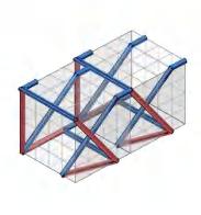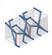 Firstly, setting incremental dimensions in 2d pixels, calculating the shortest path between two points along the grid to set as few as lines as possible. Then list all the possible path, simplify and optimize them and combine them as one unit. Then translate the pixels into 3d voxels, vary the form by rotation, then connect same or different units. To apply them in different spaces, different scales of units are set and connected in the same way. tectonic logic: 2D pixels units