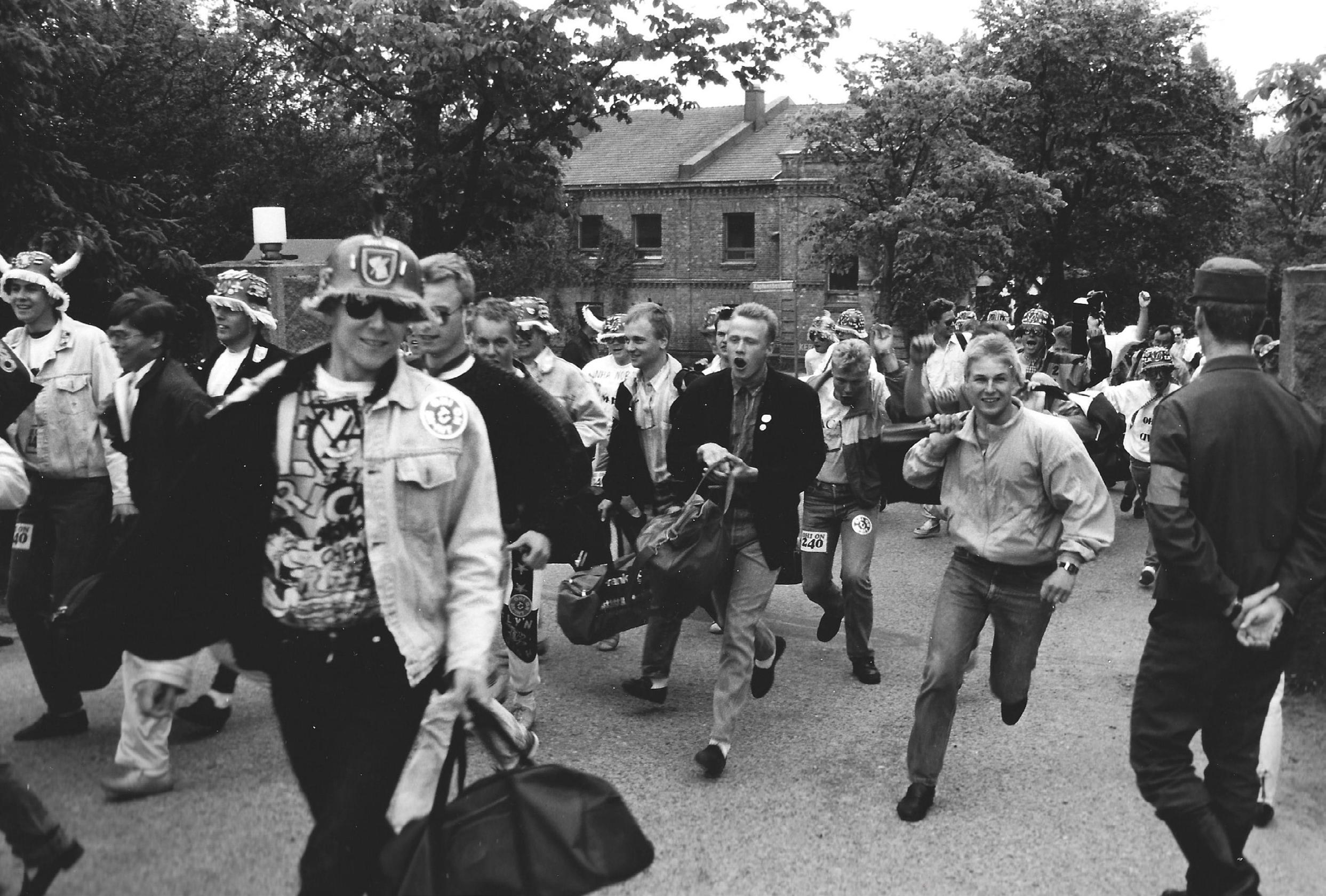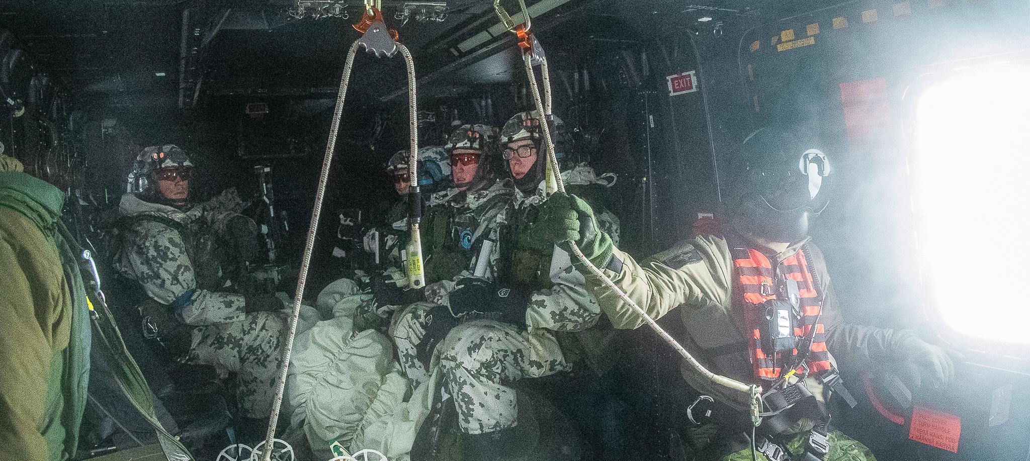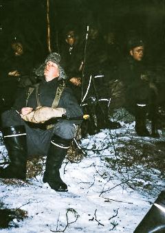 Beväringar övar på att evakuera.